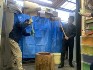 お餅をつく音が、会社内に響きわたっており