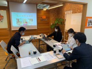 研修の報告をしたり、共有事項を各担当者が発表したり、