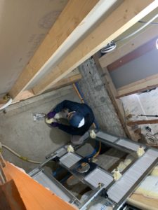 ユニットバスの施工が行われていたのでベストアングルの頭上から一枚