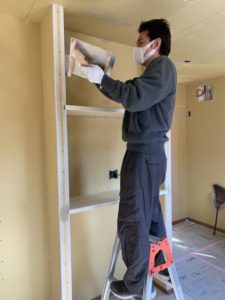 内装職人の大塚さんもクロスを貼る前の下処理に余念がありません。