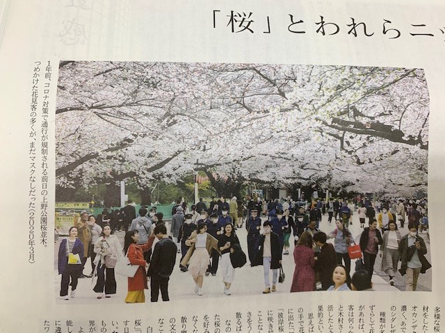下は、本日の新聞記事で、昨年の緊急事態宣言前の上野公園