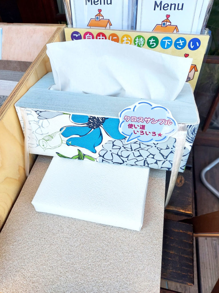 100均の真っ白のティッシュケースにクロスを貼って、一気に華やかなデザインになりました!