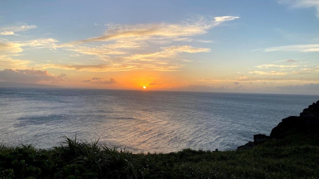 これは、石垣島に旅行に行ったときに御神崎から見た夕日です。
