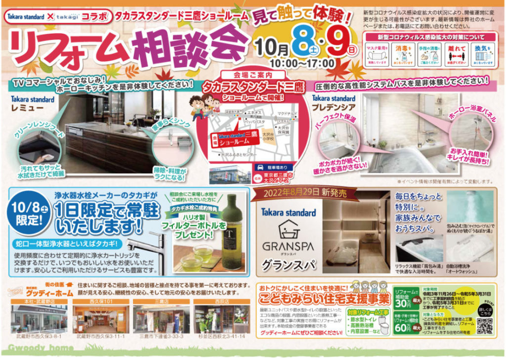 ★10/8(土)限定で浄水器メーカーのタカギが常駐いたします!