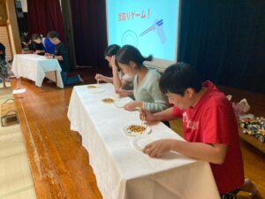 マシュマロキャッチや豆取りゲーム、うまい棒味当てゲームなど