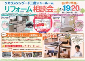 さて、今回のブログはタカラスタンダード三鷹ショールームにて開催のリフォーム相談会のお知らせです!