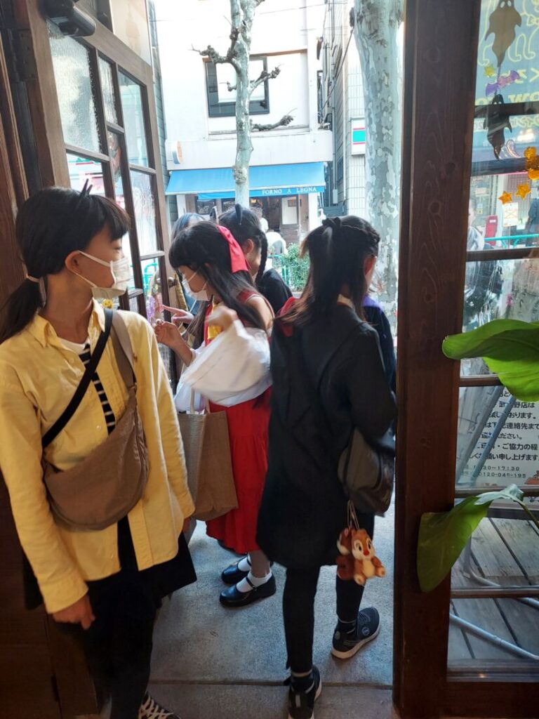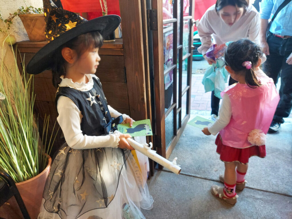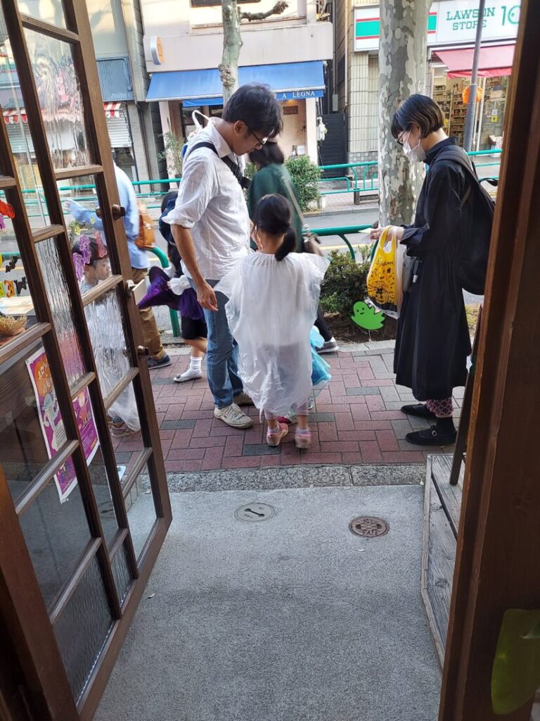 近隣店舗のスタッフさんのガイコツのお面が怖くて、通りがかる人みんな驚く場面もあったり(笑)