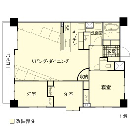 ご夫婦お互いのご実家に近い場所に住みたいと、中古マンションを購入されました。自分好みの空間に作り上げて断熱性能をアップさせ、家族の一員、イグアナのレンちゃんも快適に過ごせる家にしたいとのご相談でした。デザインに関して大胆な発想をお持ちで、「魅力的な空間」を現実化することで人が集まる家にしたいというご希望もありました。