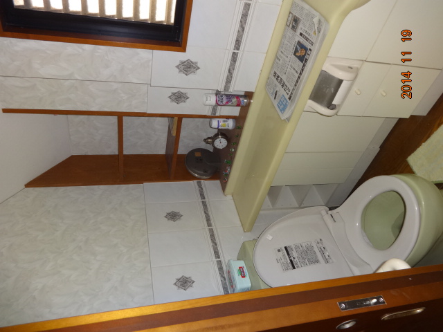 小さな居室があった部分を活用して子世帯用のトイレとバスルームを新設。トイレの内装はLDKに合わせて白と木目で統一