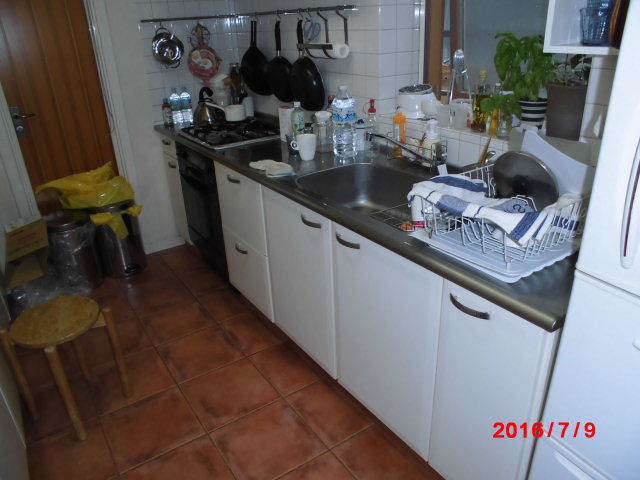 既存の輸入キッチンは、見た目は素敵だが、使い勝手が悪かったそうです。日本製のシステムキッチンに変更し「格段に使いやすくなった」と奥様も喜ばれています。壁面のタイルも貼り替え、波型のデザインタイルを採用した。