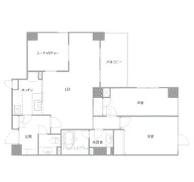 間取り変更・スケルトン 2LDK+S→1LDK。玄関~水回り~WIC~寝室の流れるような動線で暮らしやすく