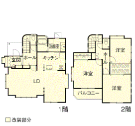 1階のLDKは仕切り壁で分断され、閉塞感がありました。キッチンから水回りへは家の中をぐるっと回らなければなりません。そこで可能な限り仕切り壁を撤去。キッチンを対面式に移動し、その背面に洗面室を設置することで開放感と家事動線の改善の両方を実現しています。玄関周りや居室間のWICなど収納の充実も図りました。