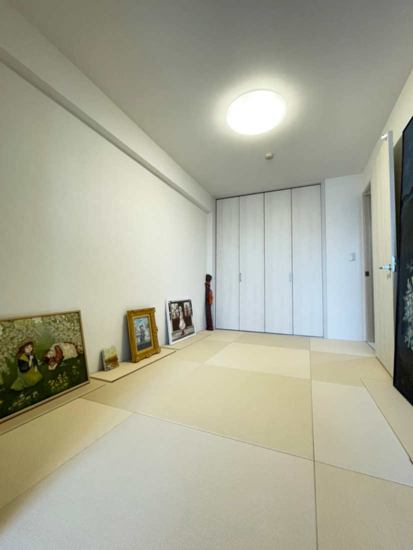 和室リフォーム 練馬区 T様邸 BEFORE AFTER 一般的な和室を洋室風にリフォームしました。ベージュ色の畳を選び優しい印象の空間に。水が染み込みにくいためお手入れ簡単です。ブルーペイントのドアがアクセントになっています。 この他、外壁塗装・屋根のリフォーム事例はこちら 商品名 畳:ここち和座(大建工業) 建具:ラシッサ(リクシル) 建物タイプ マンション 築年数 費用 工期