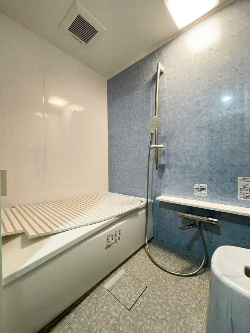 築26年の古くなった浴室を断熱性が高く、お掃除しやすいTOTOマンションリモデルにリフォーム。浴槽が低くなり、足を高く上げなくても入浴できるようになりました。アクセントパネルはプリズムブルー。爽やかなカラーで視覚的にもリラックスできそうですね。