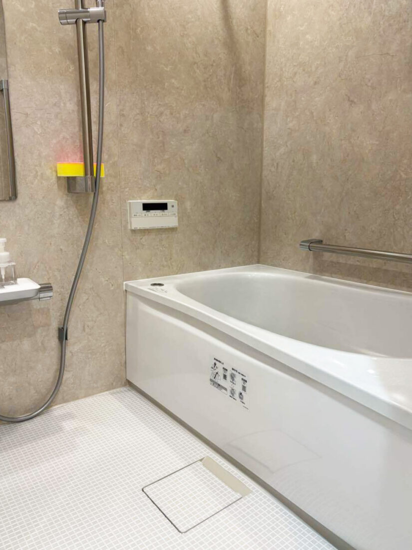 掃除を楽にしたいとのご要望があり、ボタンひとつで浴槽のすみずみまで自動洗浄できる「おそうじ浴槽」をつけました🛁✨
