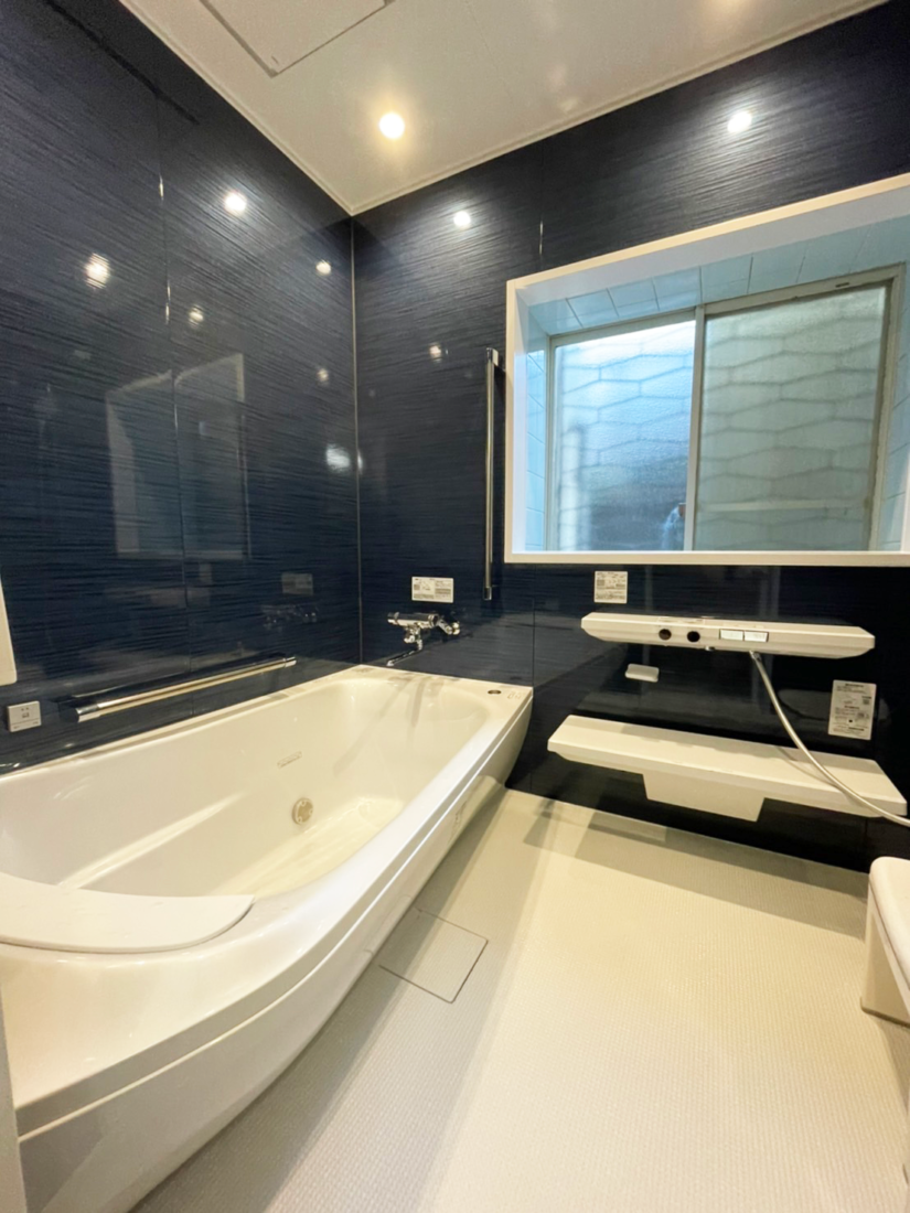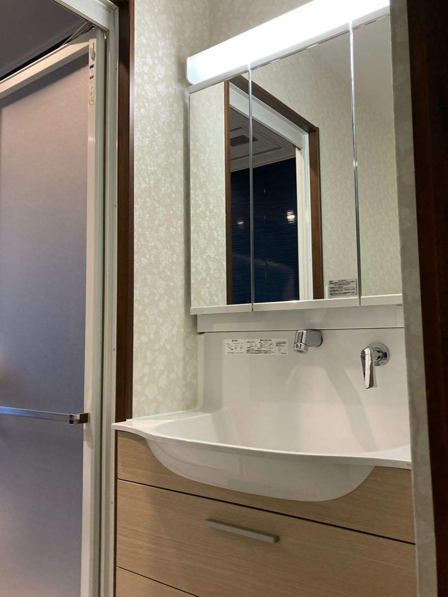 お風呂を広くしたいとご相談をいただきました。ゆったり足を伸ばせる大きさにサイズアップ!大きさだけでなく、リラックス効果を高める機能や清掃性なども充実しています。パネルカラーのラメールブルーが鮮やかで美しいですね。