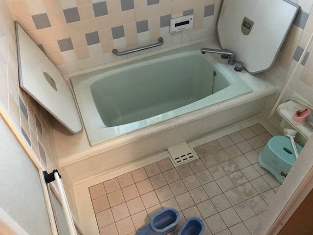 タイル張りのお風呂はひんやり寒く、また古いため使いやすい最新設備にリフォーム。入口の段差がお子様には危険なため洗面室とフラットに。浴室内は柔らかく温かいほっカラリ床で冬場でもヒヤっと感がありません。