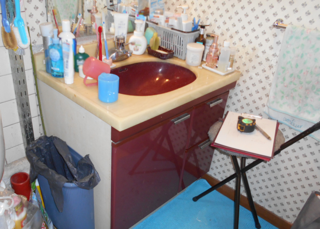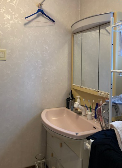既存の洗面台では収納が少ないことに不便さを感じていました。そこでコンパクトながらも収納力をアップできる洗面台へリフォーム。鏡横にはよく使うものを置くには丁度いいオープン棚もあります。洗面台横の壁は撥水トップコート+表面強度アップしたキレイが長持ちするクロスを選びました。