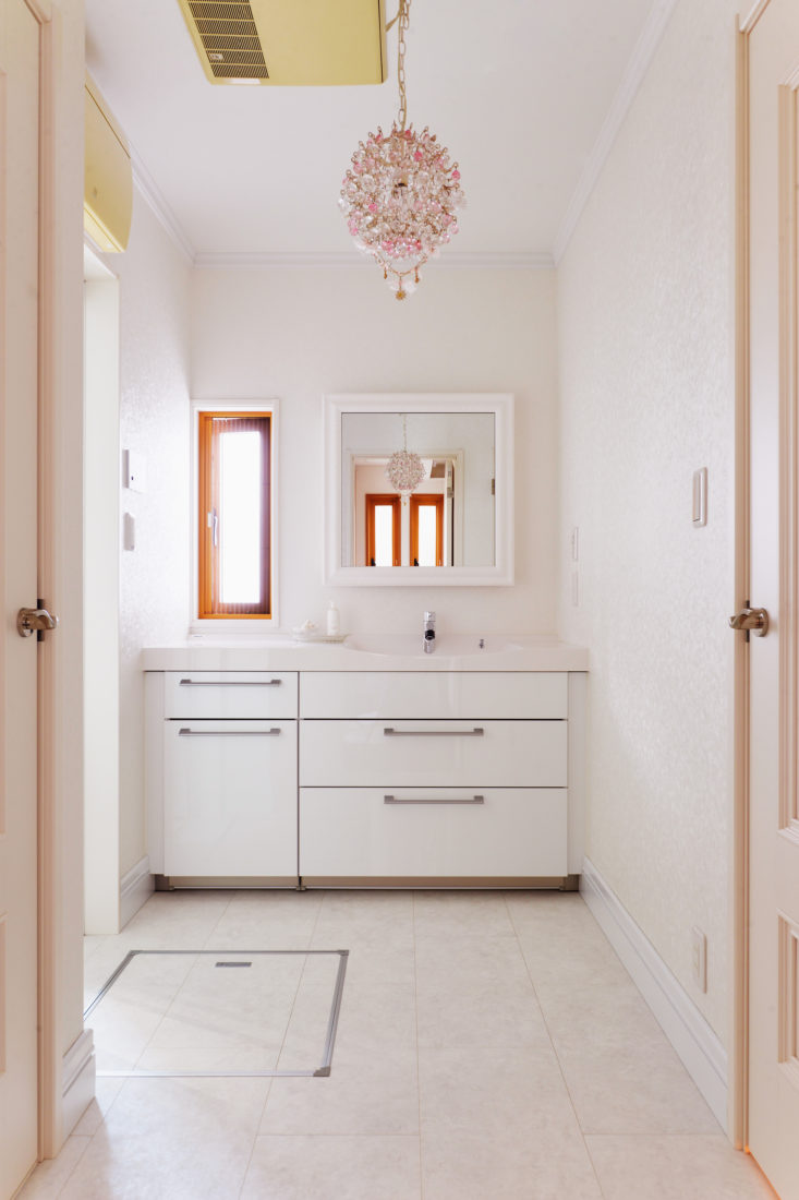 築年数が経っていてお手入れしづらいことが施主様のお悩みでした。好きなものに囲まれて暮らしたい!と、思い切ってリフォーム決意。水アカをはじく素材を使った洗面台に交換しサッと拭くだけでお手入れ簡単!モール材を組み合わせ純白に塗装した鏡は世界でひとつのお気に入りです。
