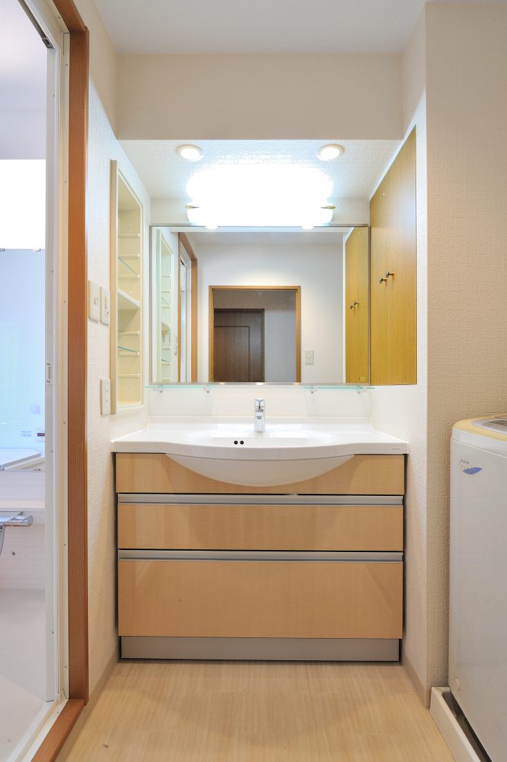 H様が希望されたのは、カウンターにボウルと鏡を設置するだけのシンプルな作り。
