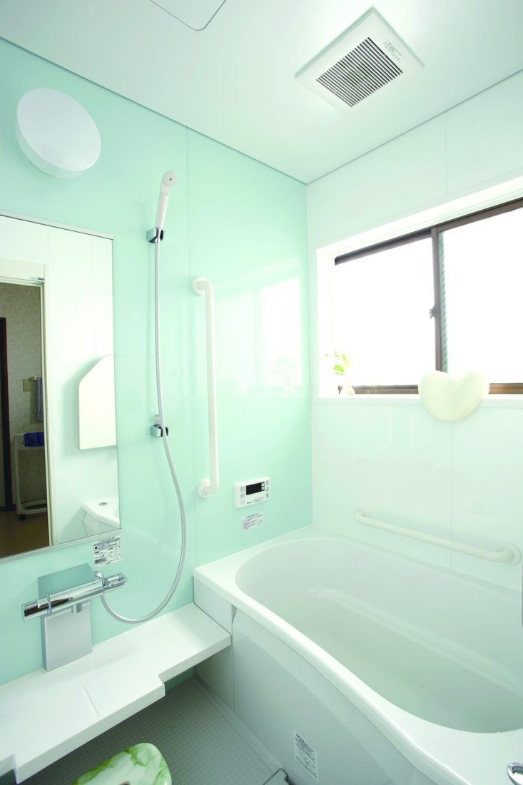 窓の改修も行い、手摺もつけて明るく安全なお風呂に。