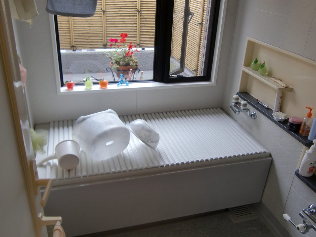 窓から見える月明かりの中で入るバスタイムは格別とご主人もご満悦です。
