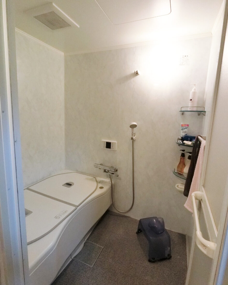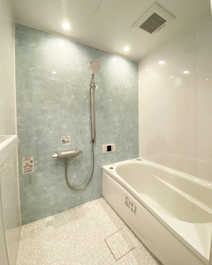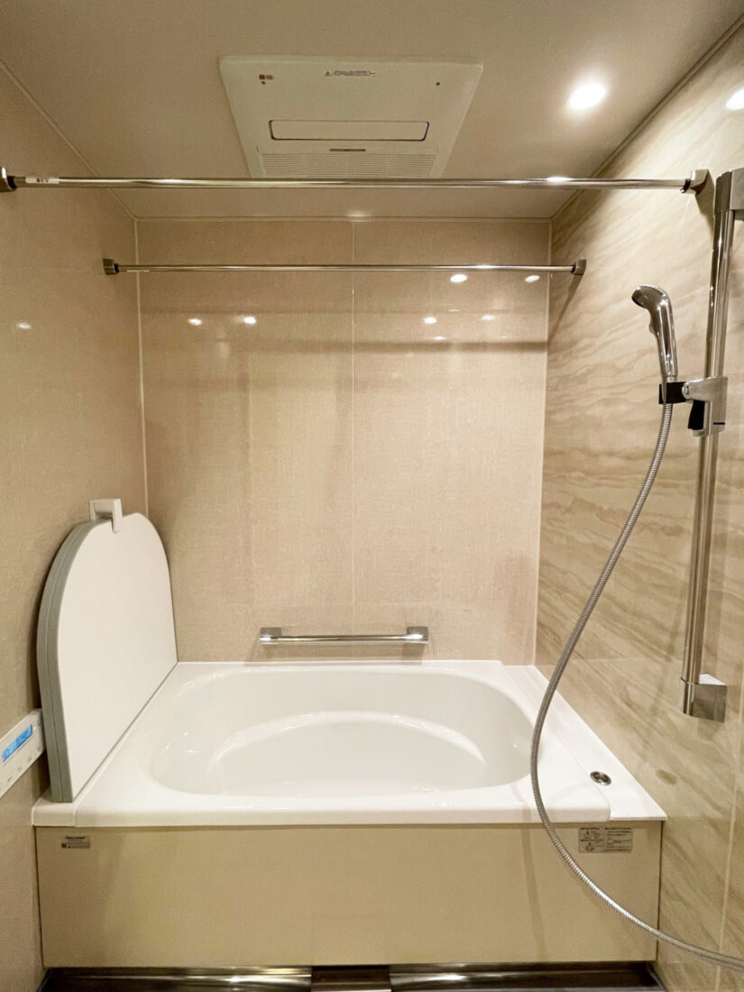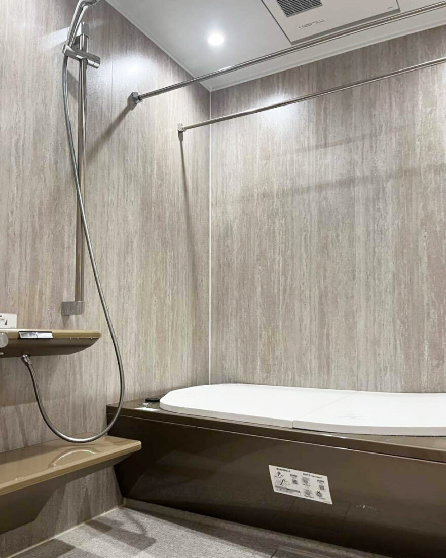 古くなってきた浴室をお手入れしやすいものに交換したいとご相談いただき、TOTOのマンションシンラにリフォームしました。床にくまなくきれい除菌水を吹きかけ、カビや菌の増殖を抑える「床ワイパー洗浄」、意外と大変な浴槽のお手入れが簡単にできちゃう「おそうじ浴槽」はどちらもボタンをポチっと押すだけ!浴室のお掃除がグっと楽になります。