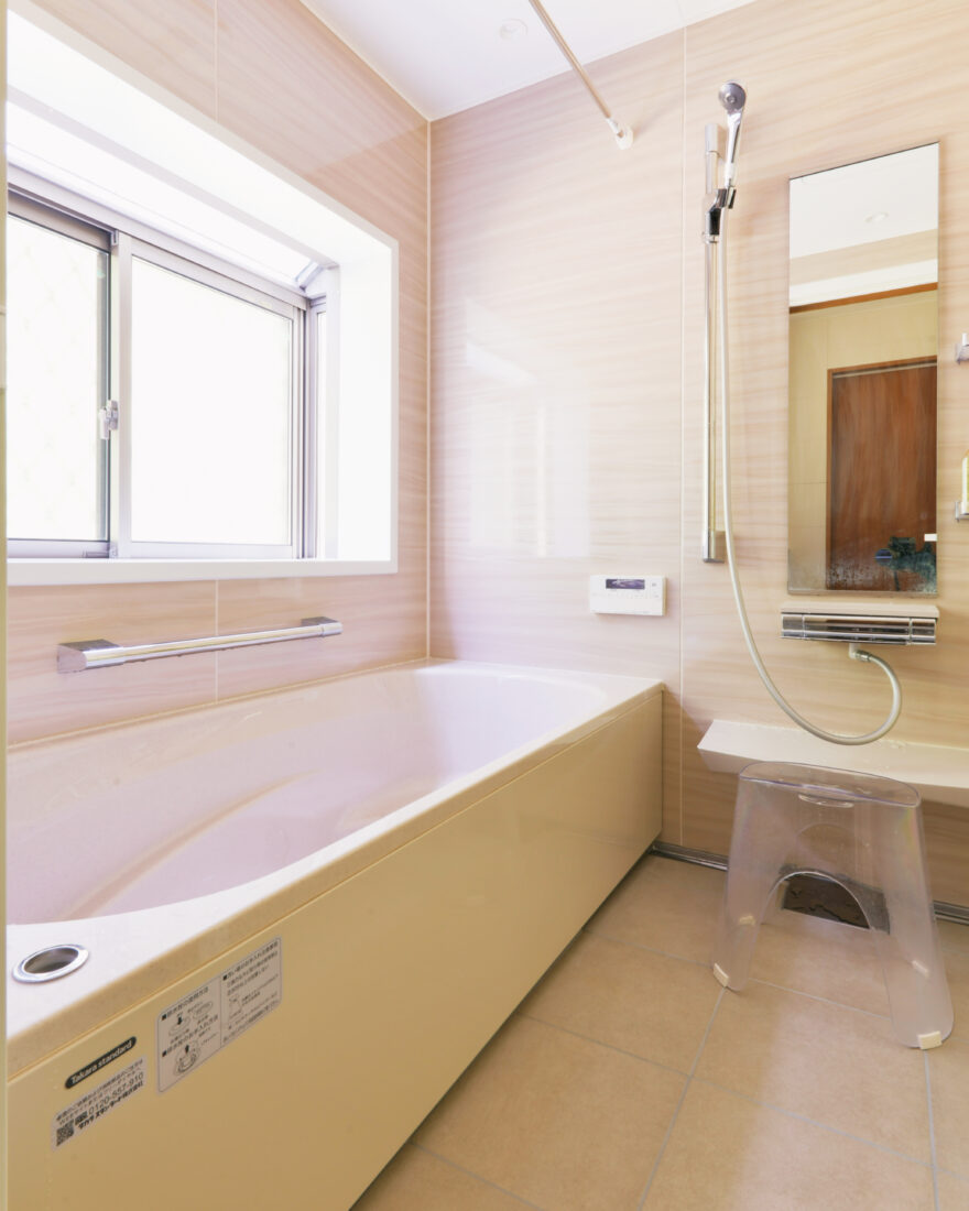 ベージュで統一された視覚的にも温かみを感じる浴室になりました。