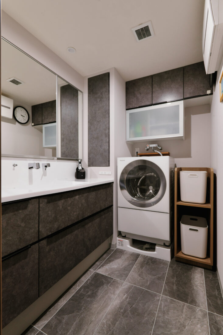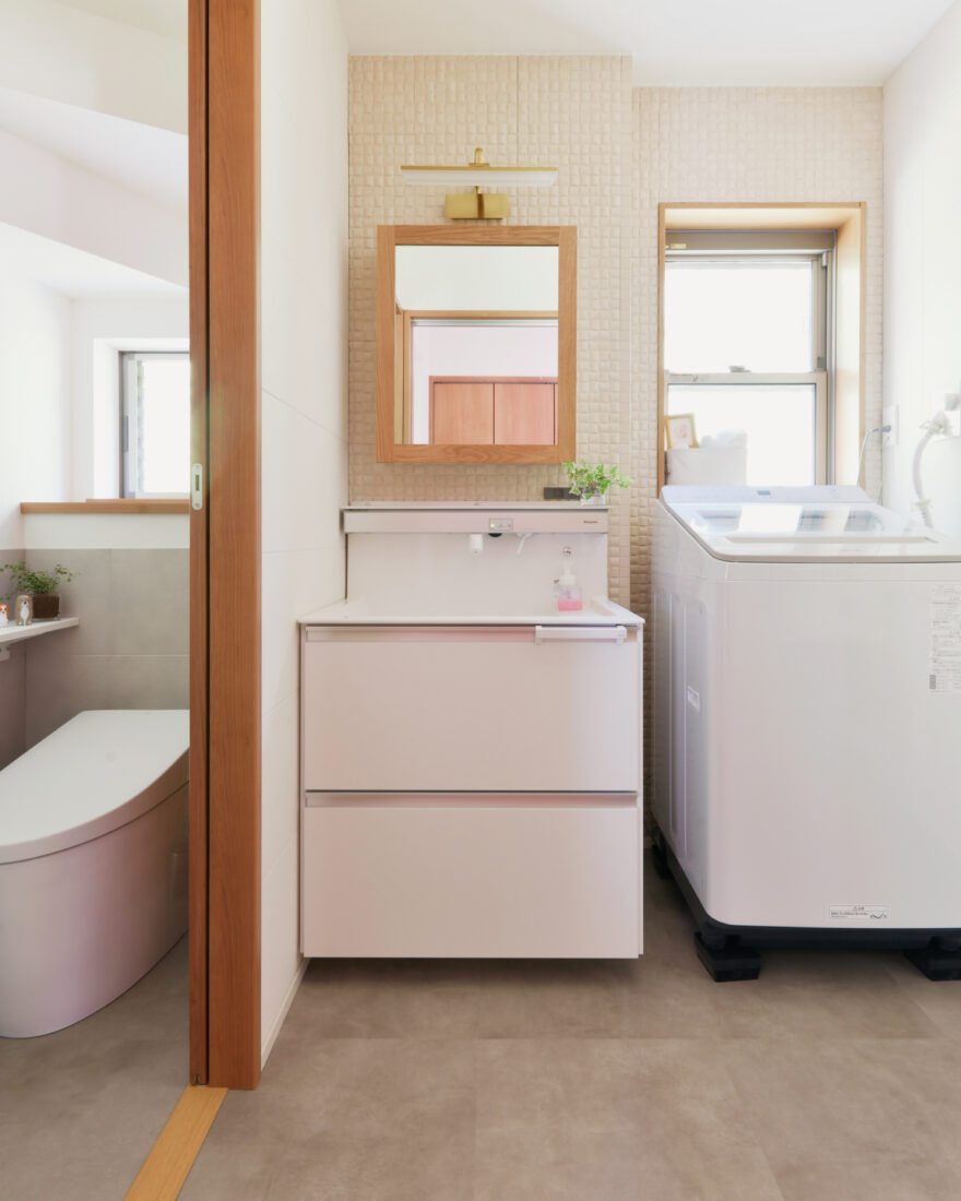 - 洗面台:エリーナ(タカラスタンダード) 床:IS1033(サンゲツ)