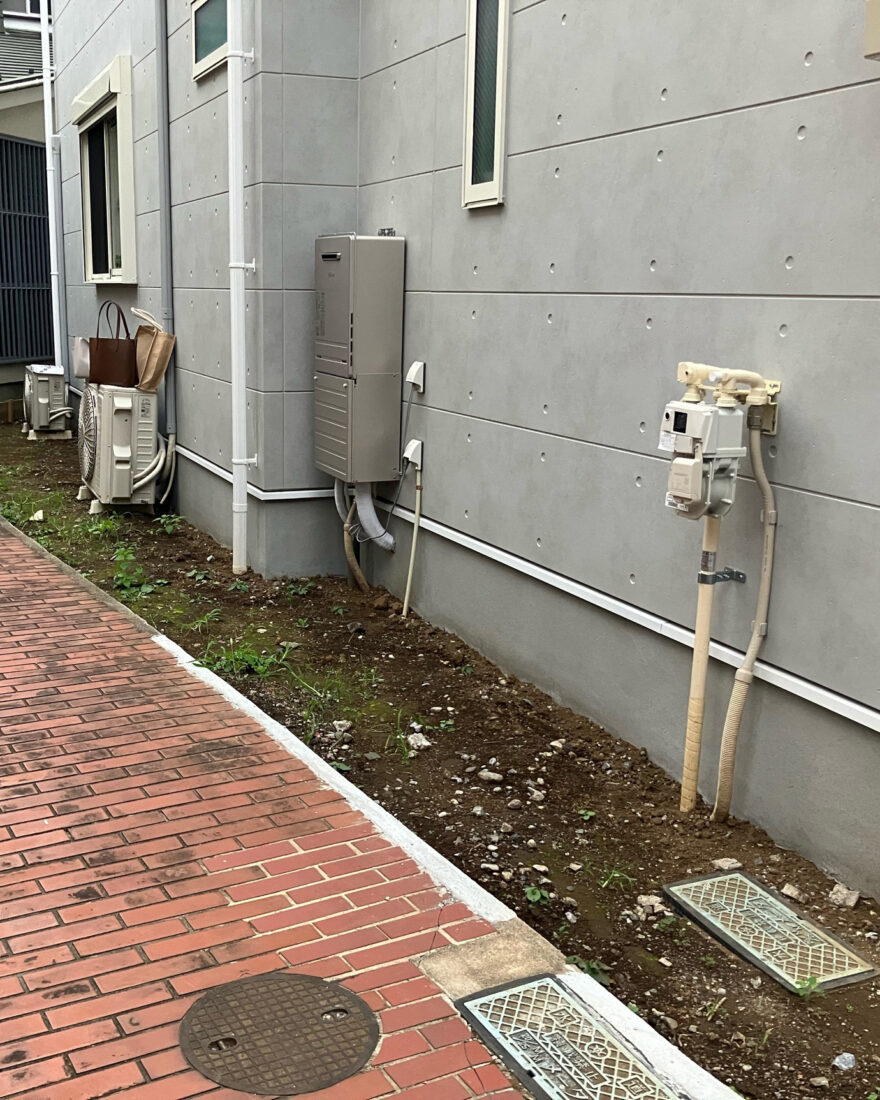 土がむき出しだったので、雑草などのお手入れをしなくていいように防草シートと砂利を敷きました。