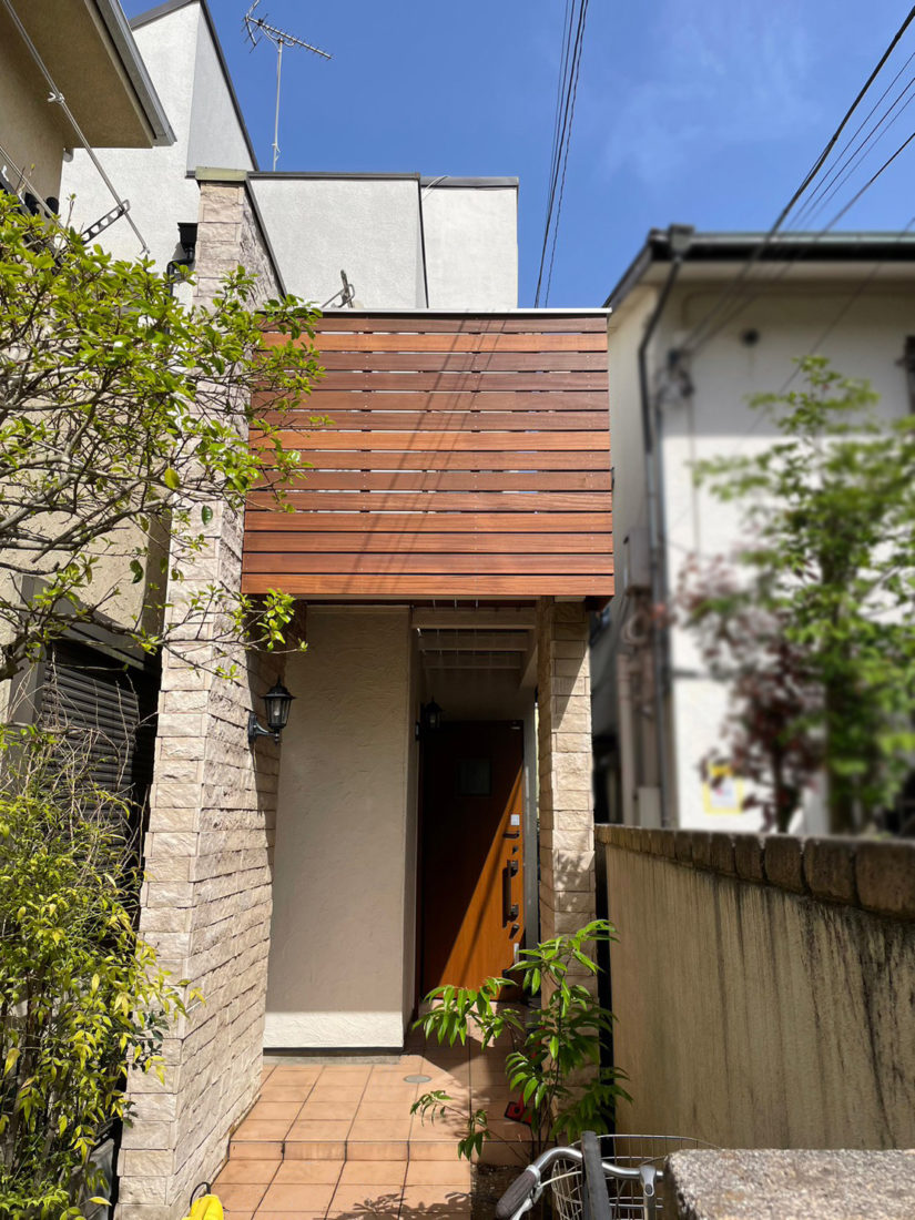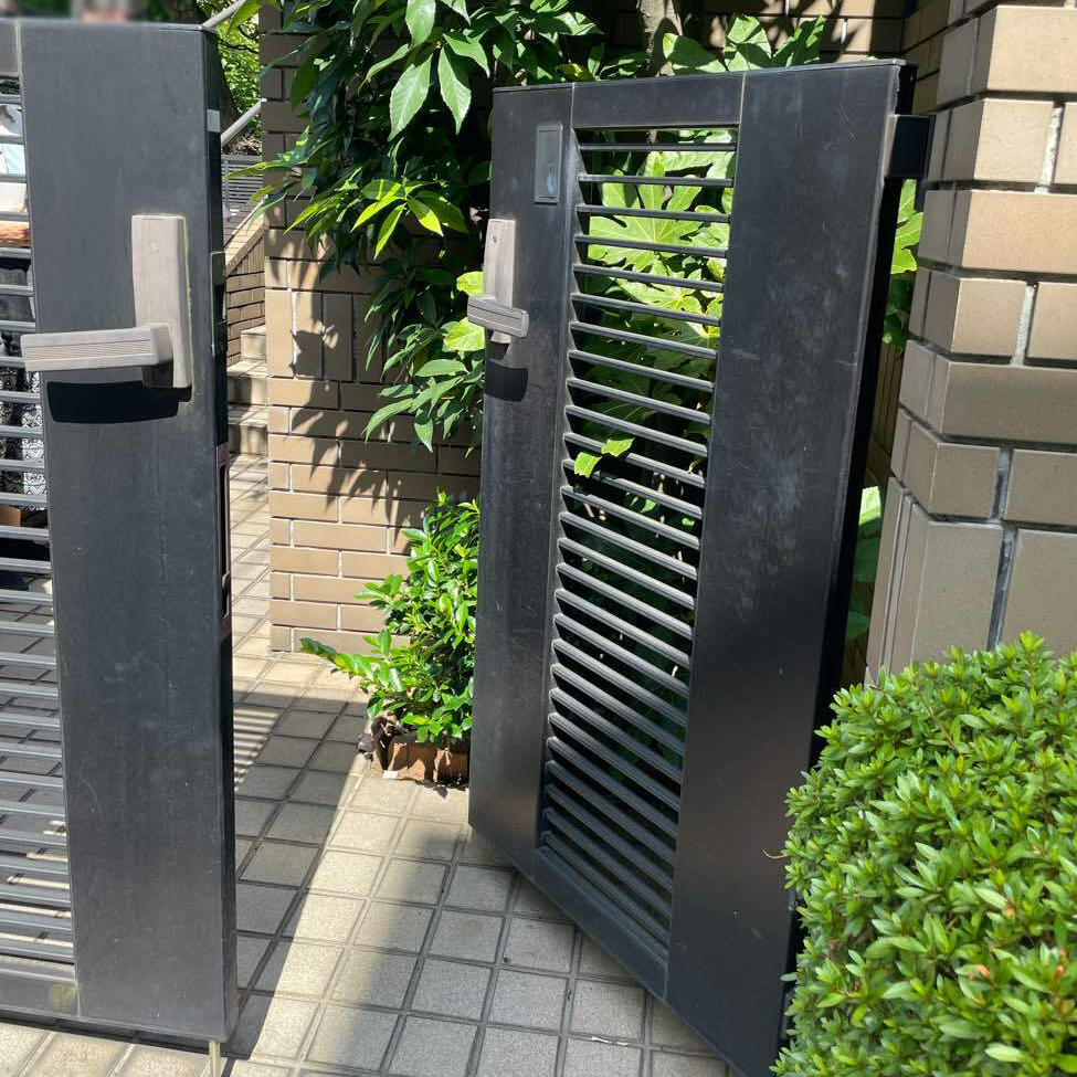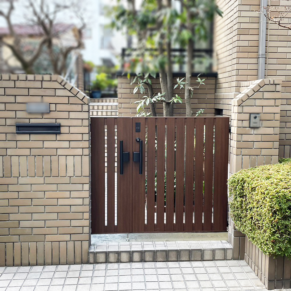 門扉の電子錠が壊れてしまったとご相談いただきリフォームしました。非接触式のカードキータイプで開け閉めの煩わしさがない門扉を設置。デザイン性も高く、ナチュラルな色合いや質感にこだわっています。