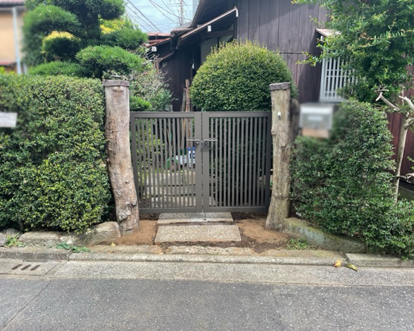 門扉交換工事 武蔵野市 Y様邸 2022.08.06 BEFORE AFTER 傾いてきちんと閉まらなくなってしまった門扉を丈夫なアルミ門扉に交換。スタンダードなデザインなので元々ある木柱とも馴染んでいます。 この他、内装のリフォーム事例はこちら 商品名 アルミ門扉:YR3型(LIXIL) 建物タイプ 戸建て
