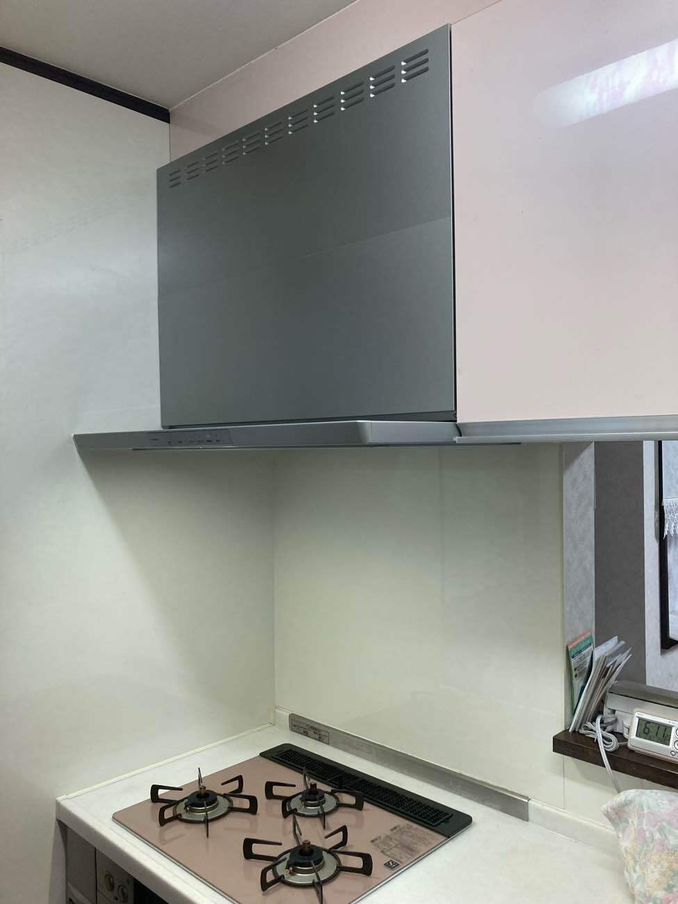 レンジフードから異音がするようになりご相談をいただきました。打合せを重ね、キッチン本体も交換することになり、TOTOのミッテにリフォームしました。今回選んだレンジフードはスーパークリーンフード。フィルターがなく、日常のお手入れはさっと拭くだけで完了です。