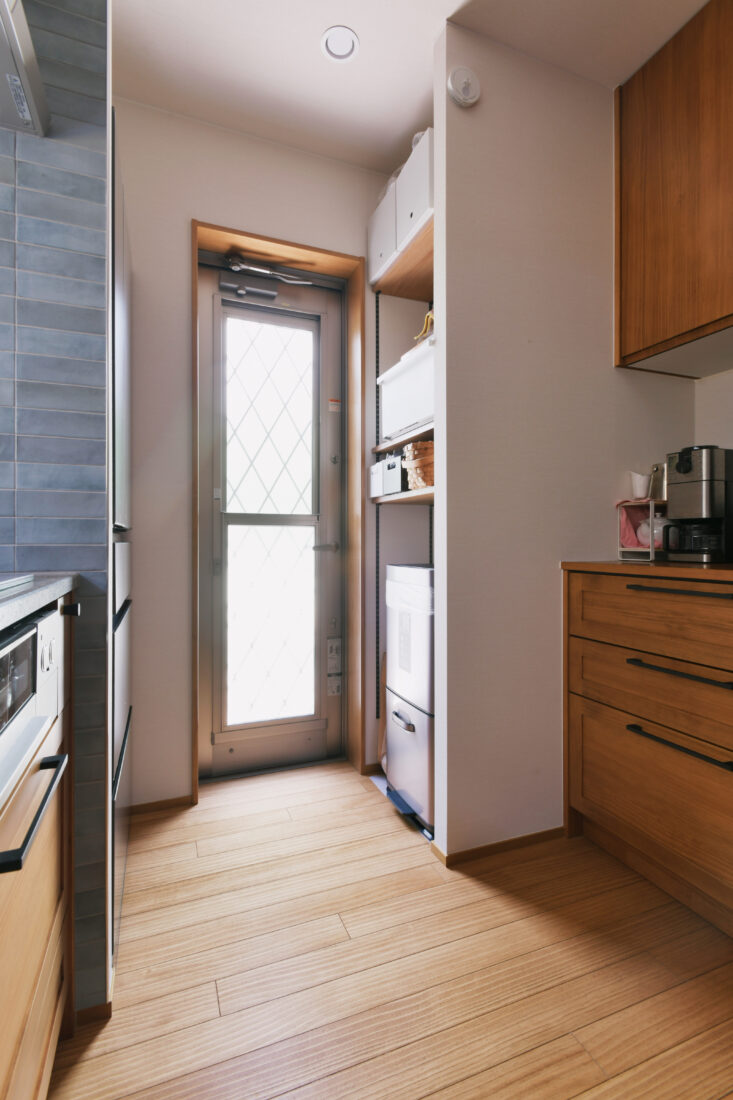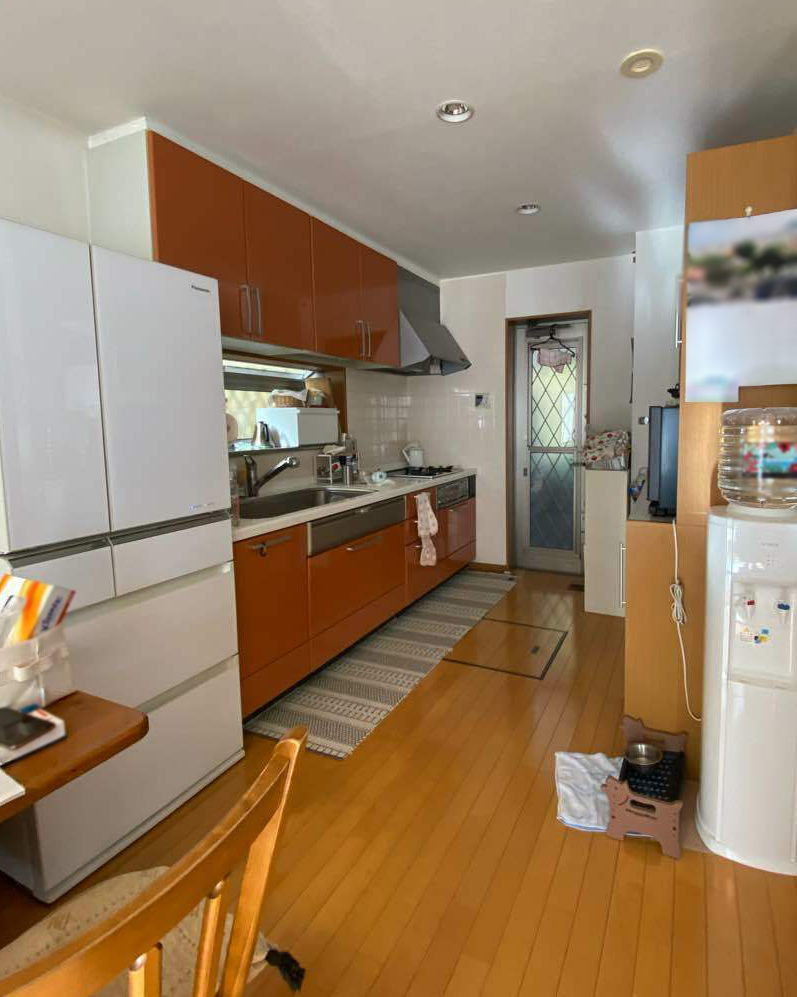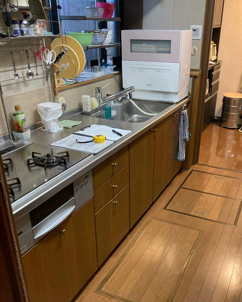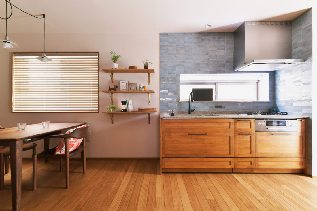 壁付けだったキッチンを対面式にリフォーム。キッチン側とリビング側で天板の高さが選べるデュアルトップ対面。ハイタイプは手元が見えないので、ほどよく生活感を隠せます。扉やカウンター、サイドパネルなどパーツごとで材質やカラーを自由自在にコーディネートできるのも特長です。デザインも使い勝手も良いキッチンは、家事をするのが楽しくなりますね。