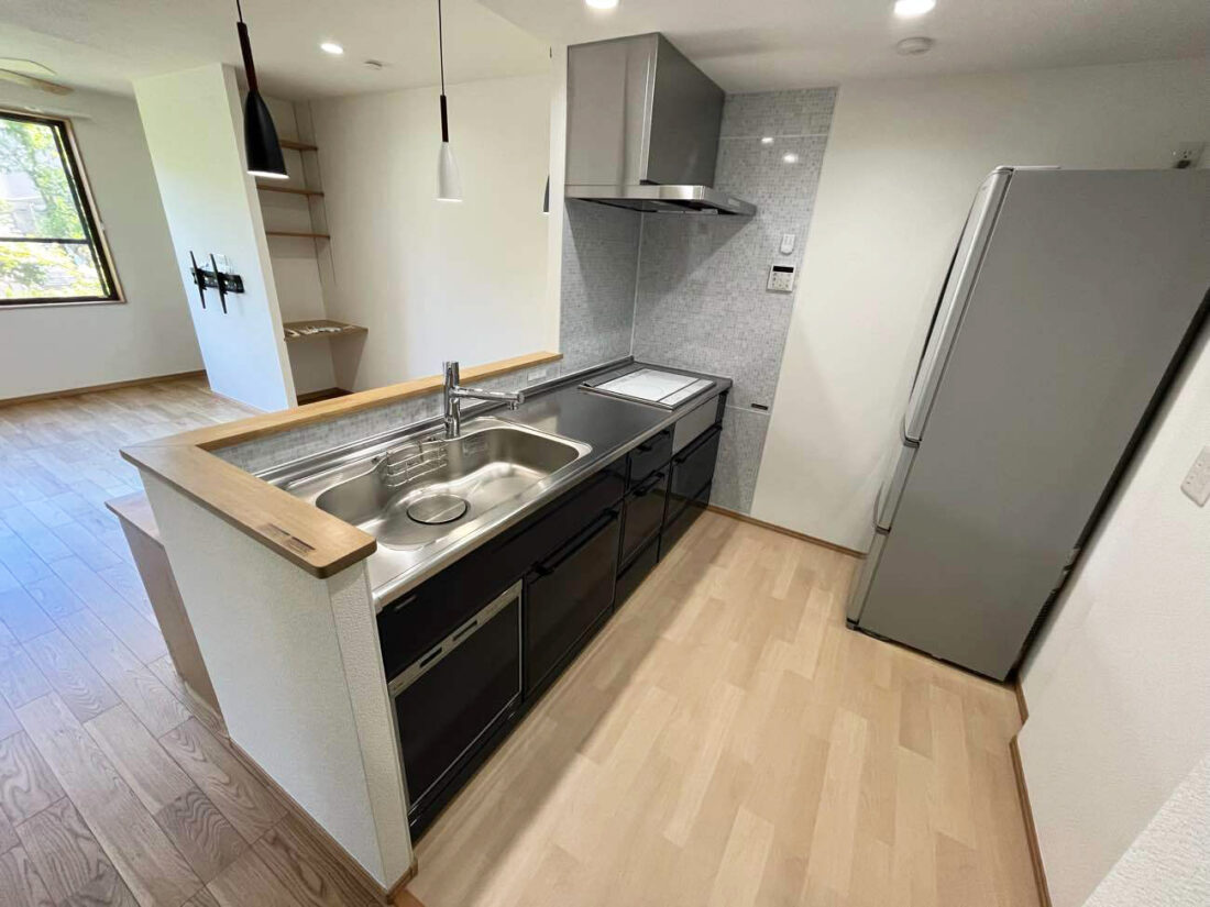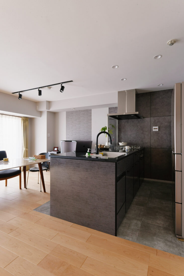 独立型からペニンシュラ型キッチンへリフォーム。リビングが見渡せて、明るく開放的に。ブラックより重くなく空間に馴染みやすいグレーカラーがオシャレですね。濃い色は汚れが目立ちやすいですが、タカラスタンダードのキッチンは高品位ホーロー素材なので、サッと拭くだけでキレイを保てます。他にも家事を時短できる「家事らくシンク」や、マグネットで自分が使いやすいようにカスタマイズできる「かくせるホーローボックス」など、機能も充実しています。