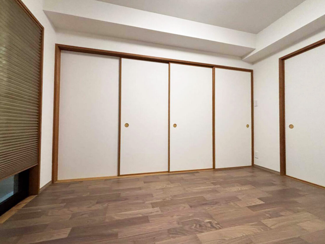 和室の畳を撤去して、天然木の味わいを表現したフローリングにリフォーム。完全に洋室にはせず、襖や押入は残すことに。プリーツスクリーンは、和室の名残がある部屋でも浮かない和紙調のものを選びました。