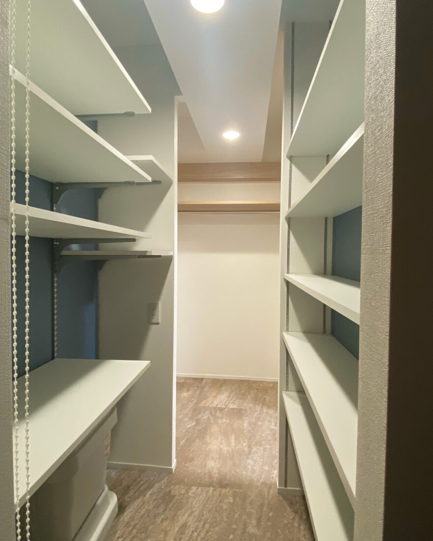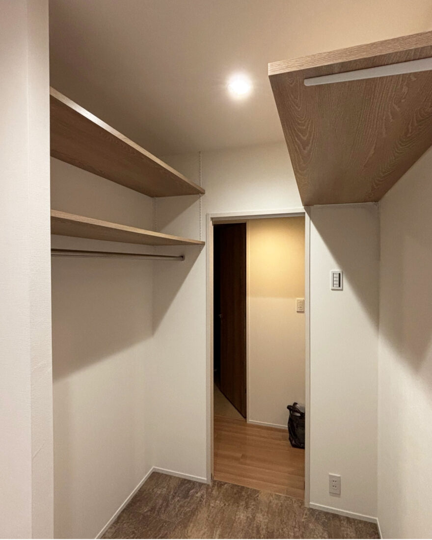 お子様の受験があり間取り変更をした際、物入れとクローゼットだった場所をウォークスルークローゼットにリフォームしました。両隣の子ども部屋、廊下、リビングから出入りできるようになり、回遊性のある住まいに。収納量も増えてすっきりしました。