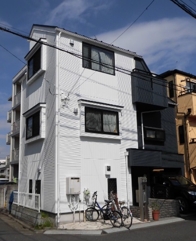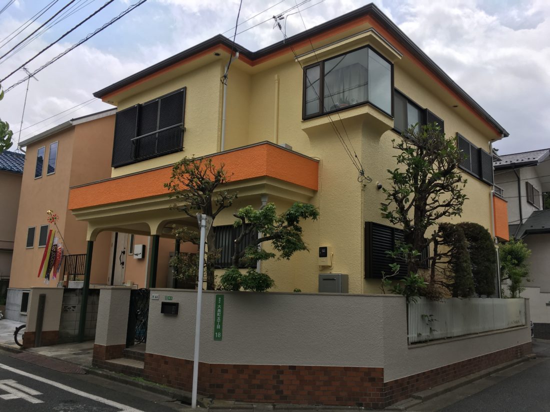 外壁塗装で一部鮮やかな色を使った施工事例です。