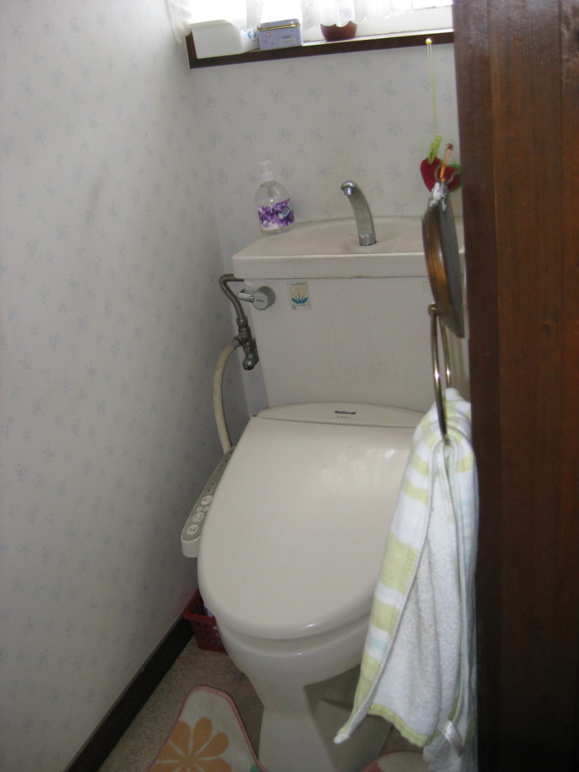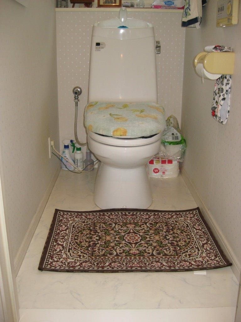 Beforeは全体的に白く少し閉塞感がありました。そこで、床はウッド調のクッションフロア、壁はマットな質感の水色のクロスにしたことで、トイレ本体の白さが際立ち清潔感を残しつつ表情のある空間になりました。