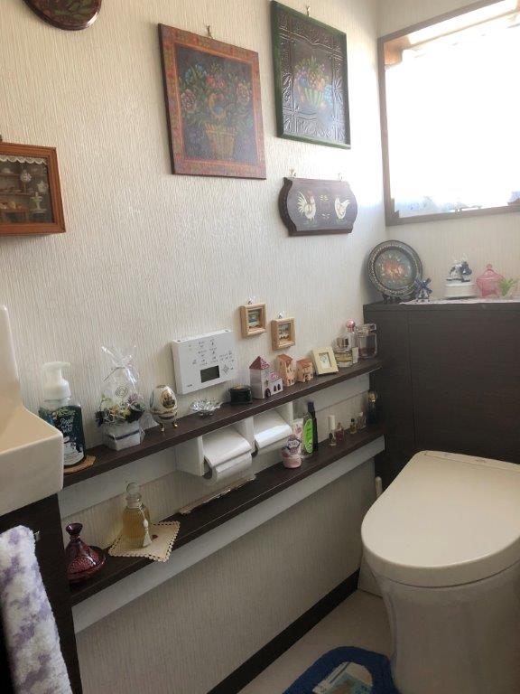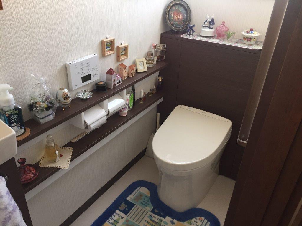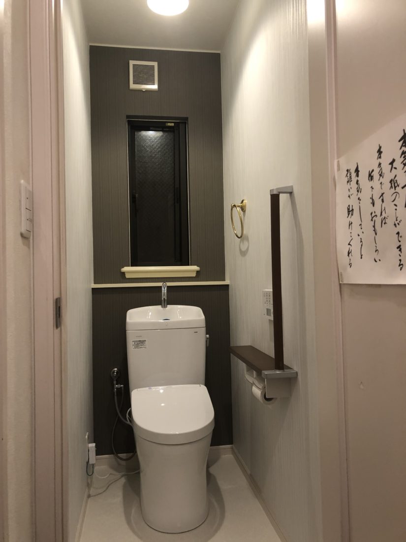 タンク前にパイプが出ていましたが、給排水を移設したことですっきりとしました。トイレ本体はTOTOのピュアレストQRに。フチ裏がなく凹凸が少ないため、見た目がすっきりしただけでなくお掃除のしやすさも兼ね備えています。
